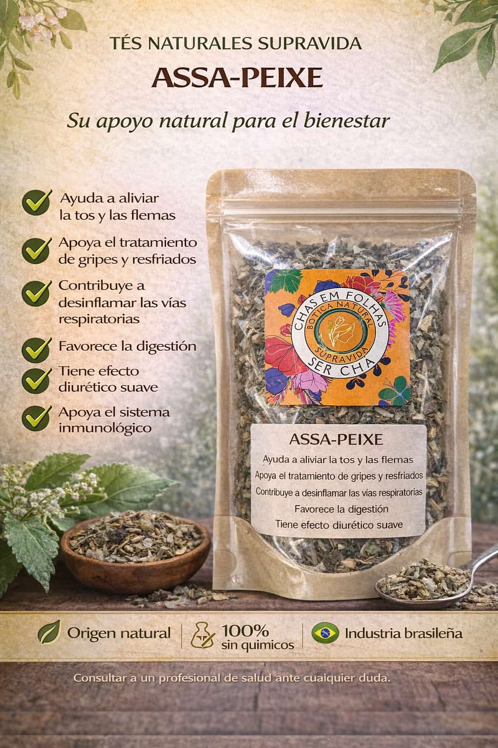 El Assa-Peixe es una planta tradicionalmente utilizada en la fitoterapia brasileña por sus propiedades beneficiosas para el sistema respiratorio. Su consumo en infusión es una opción natural para acompañar procesos de gripes, resfriados y afecciones leves de las vías respiratorias.